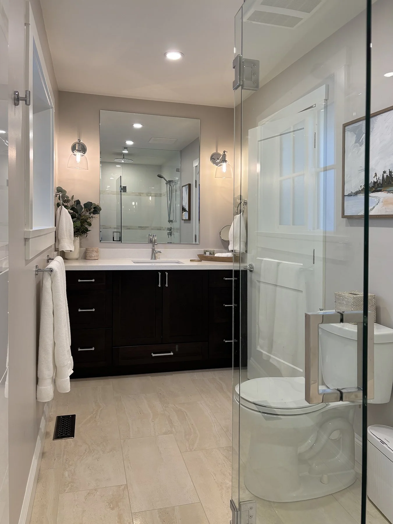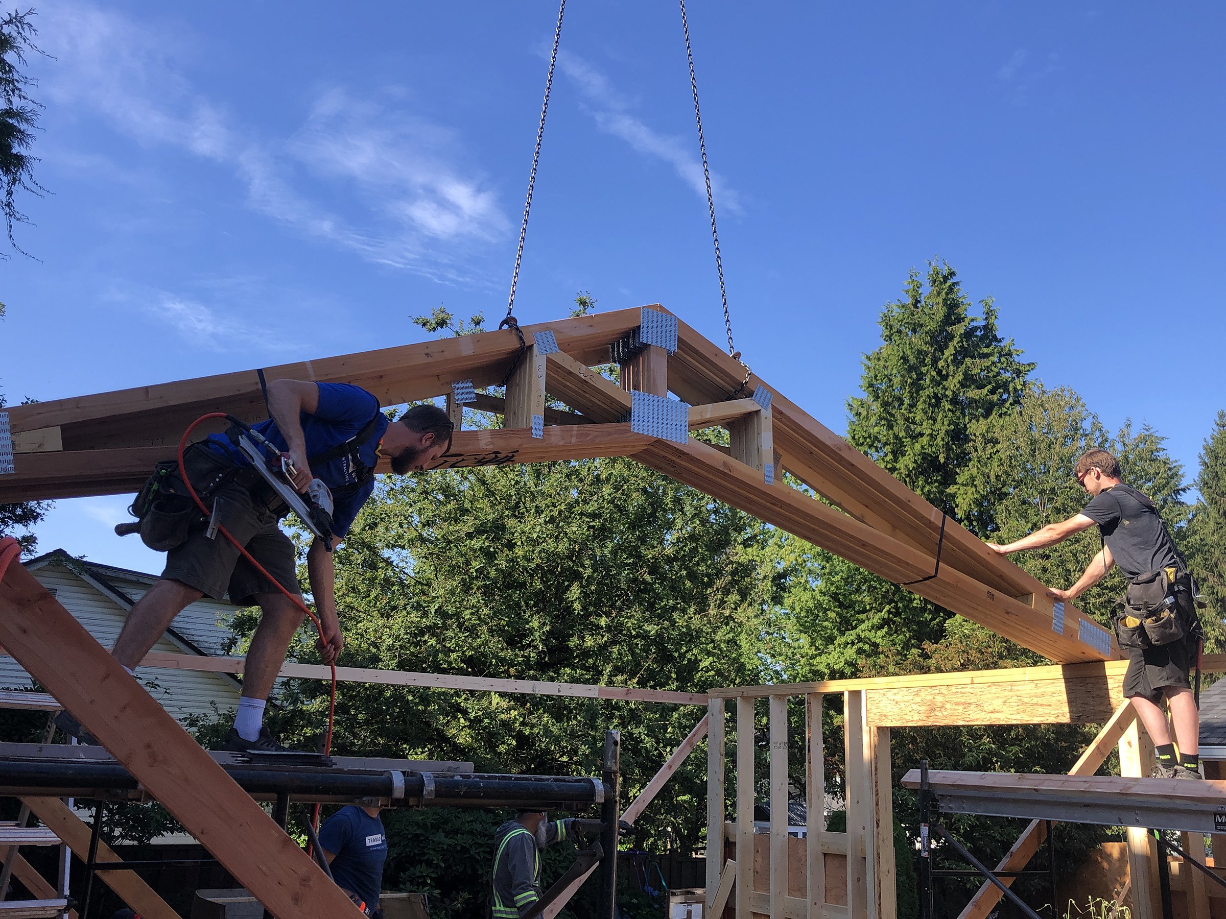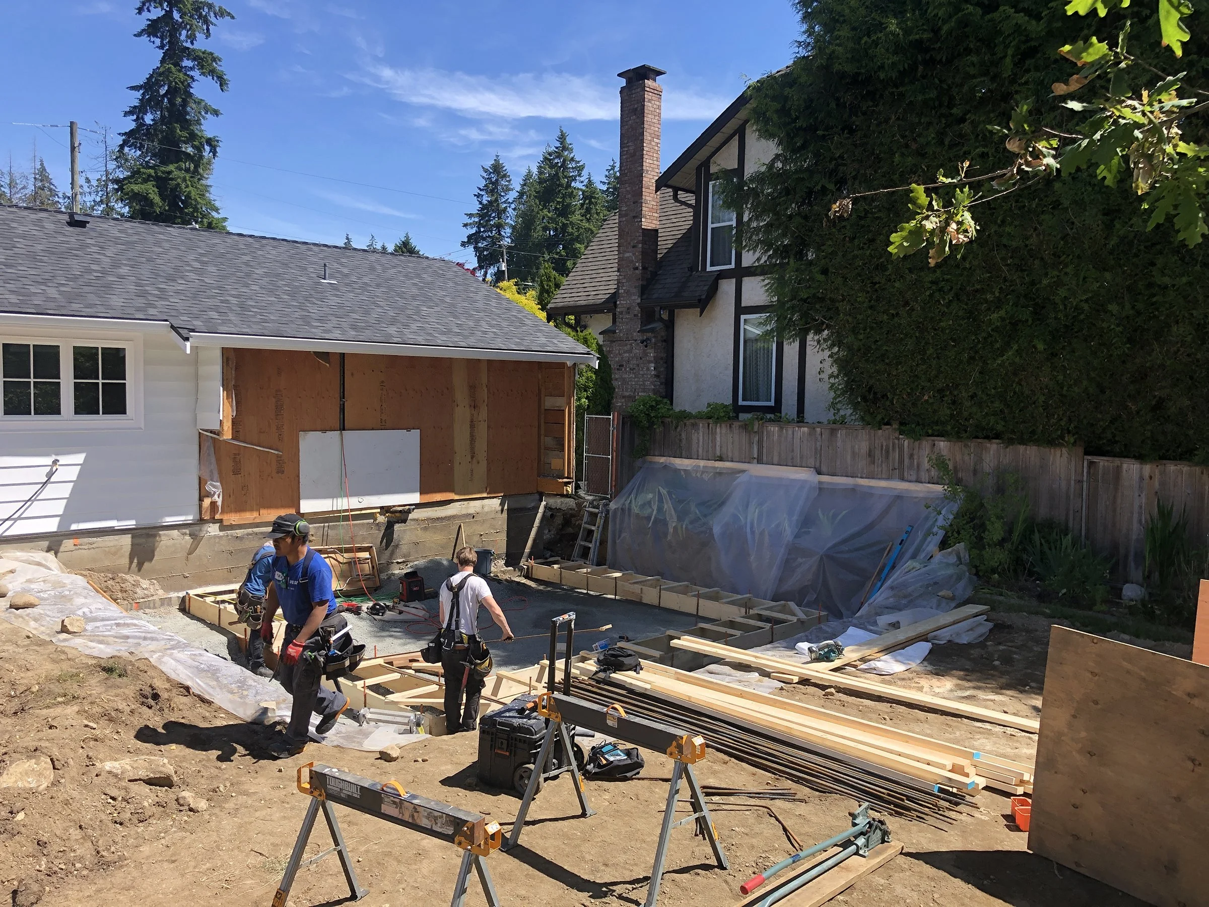 This family needed more space: their children were growing fast, and the parents needed a home office. So, we excavated the back yard, poured concrete to expand the foundation and started framing a new wing to the house! We collaborated closely with the homeowners from the very beginning to control costs and schedule. There was a minimal architectural plan, so we provided the homeowners with detailed design checklists so they could design work themselves. The result – a bright, well-organized home with plenty of room for work, play and entertaining.