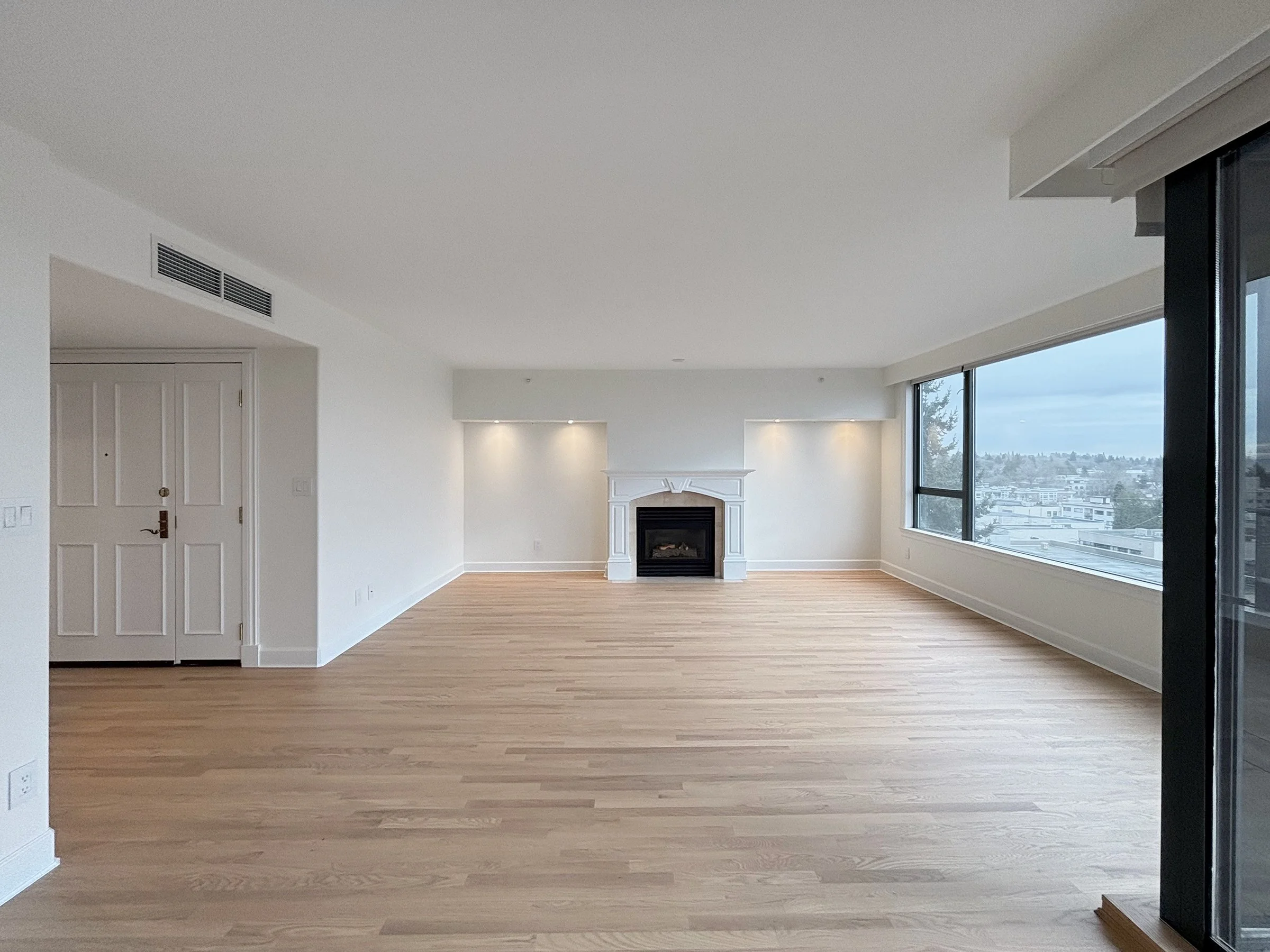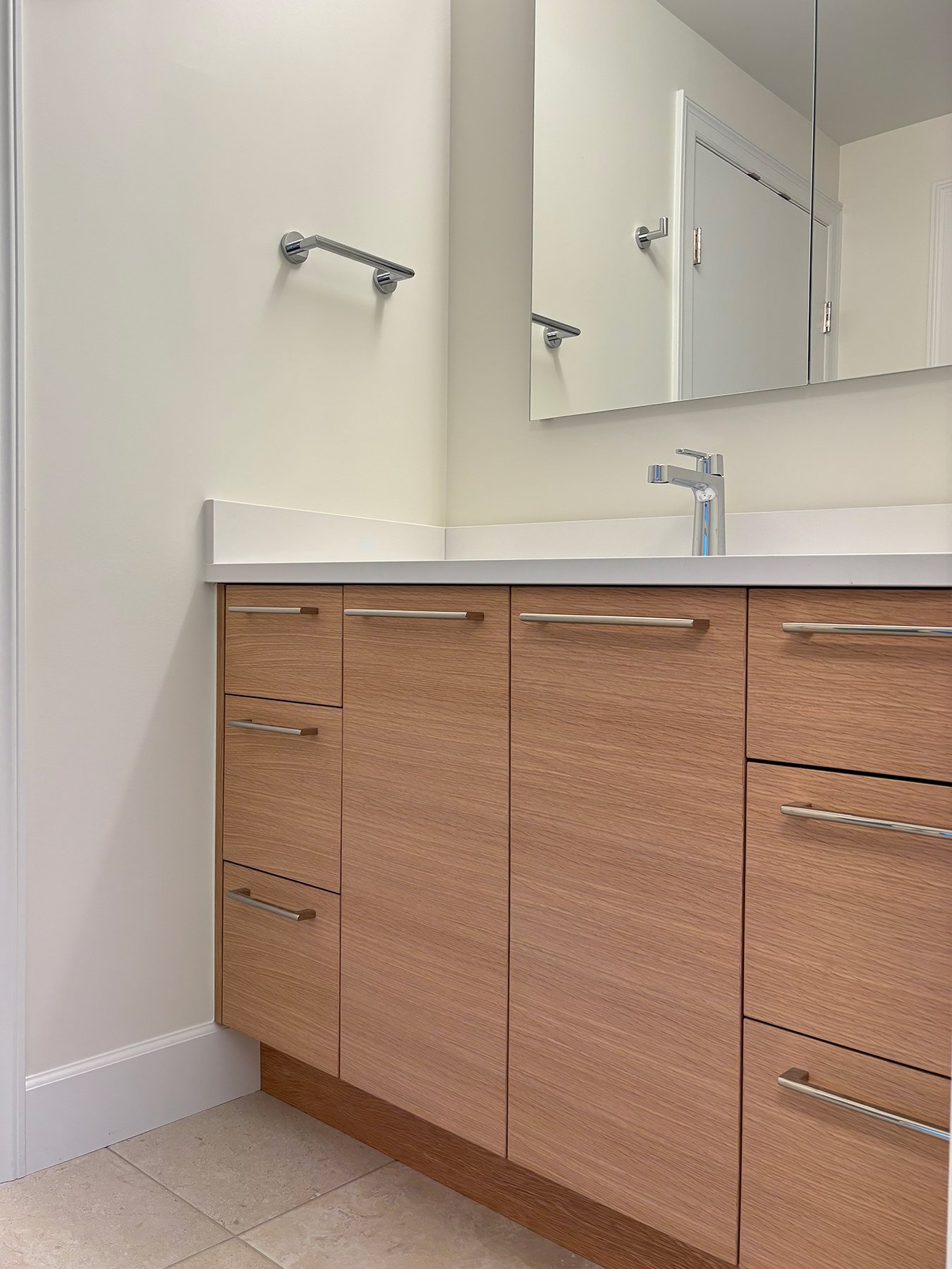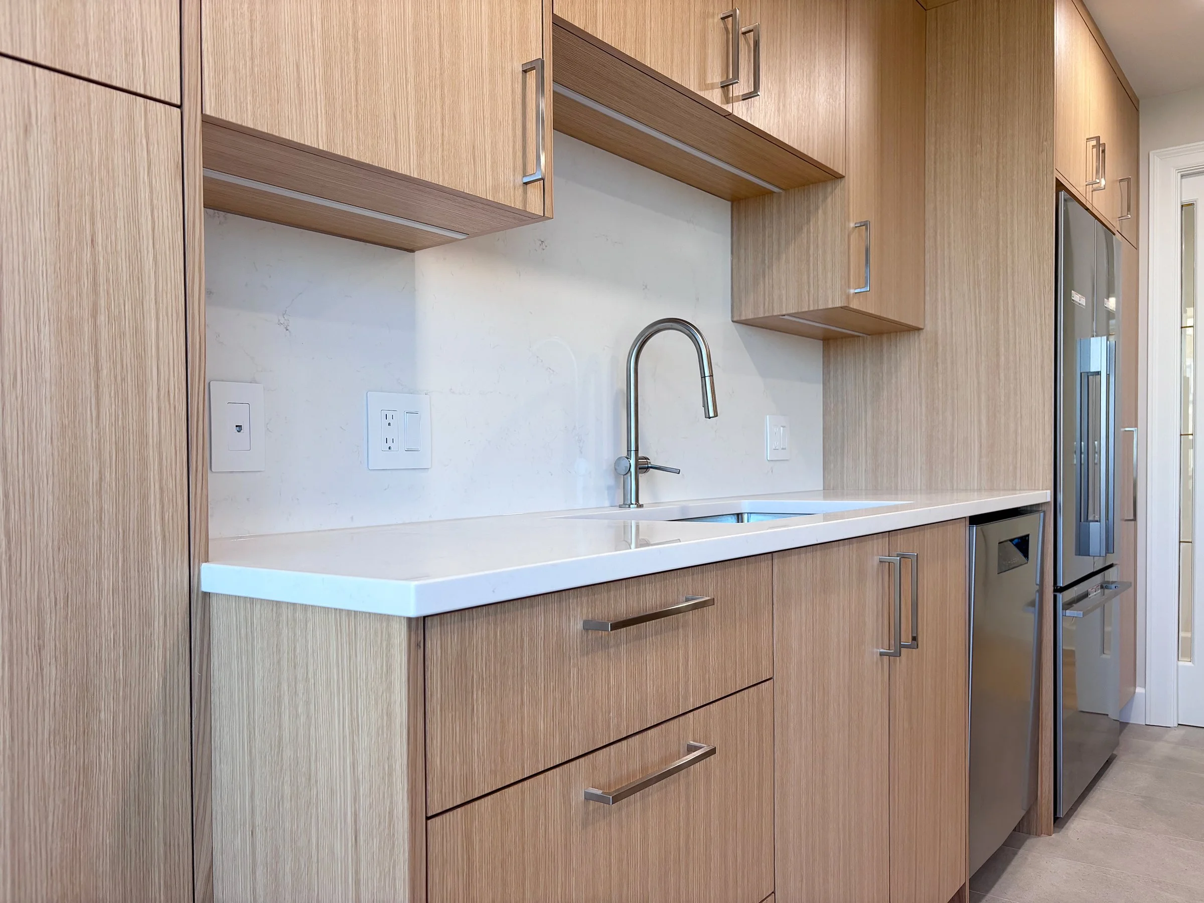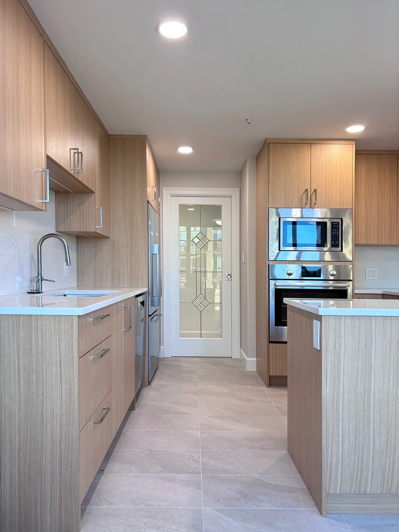The homeowners purchased this large condo to provide plenty of extra space for visiting grandchildren. The existing space had incredible views, but a dated and tired interior. Collaborating closely with the homeowners and Sunny Bae Design, we came up with a game plan to modernize the space without losing its elegance. We completely gutted and re-built the kitchen and bathrooms while selectively updating the finishes elsewhere. Removing the old wallpaper, re-finishing the original oak floors, and selectively updating the mouldings gave this condo a fresh, yet elegant look.
