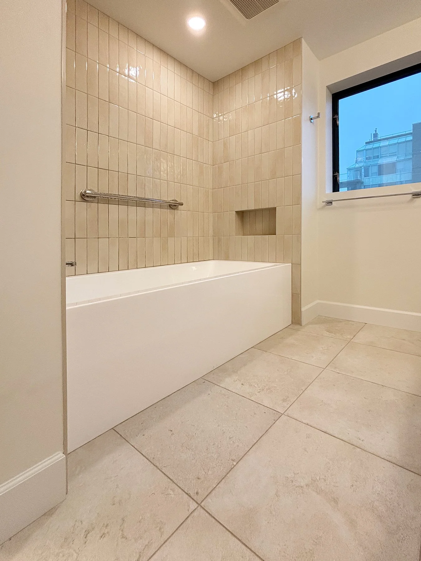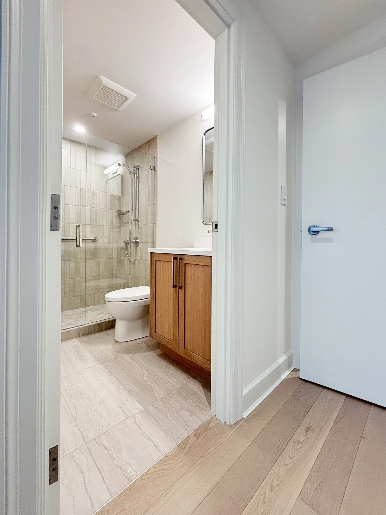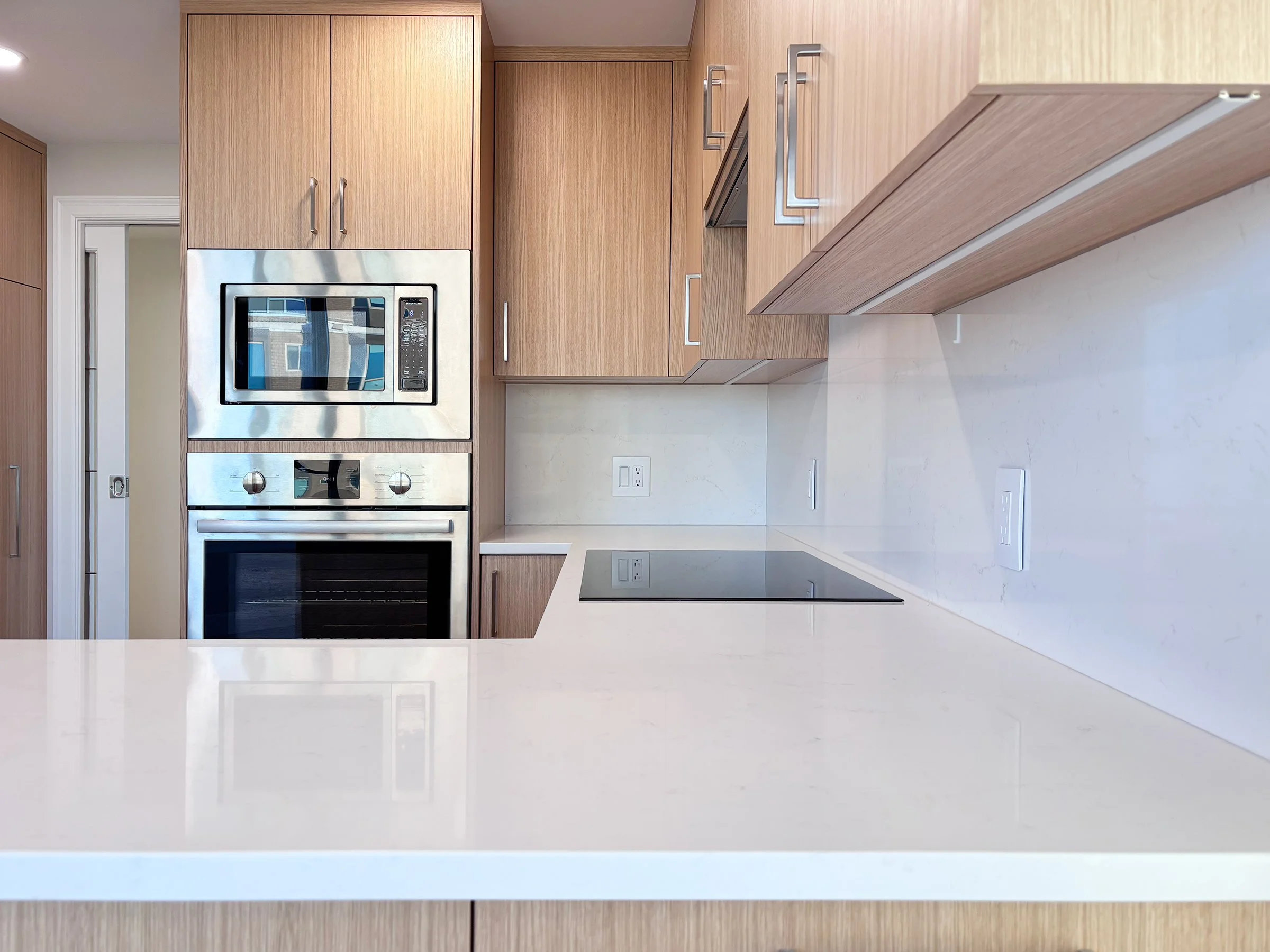 The homeowners purchased this large condo to provide plenty of extra space for visiting grandchildren. The existing space had incredible views, but a dated and tired interior. Collaborating closely with the homeowners and Sunny Bae Design, we came up with a game plan to modernize the space without losing its elegance. We completely gutted and re-built the kitchen and bathrooms while selectively updating the finishes elsewhere. Removing the old wallpaper, re-finishing the original oak floors, and selectively updating the mouldings gave this condo a fresh, yet elegant look.