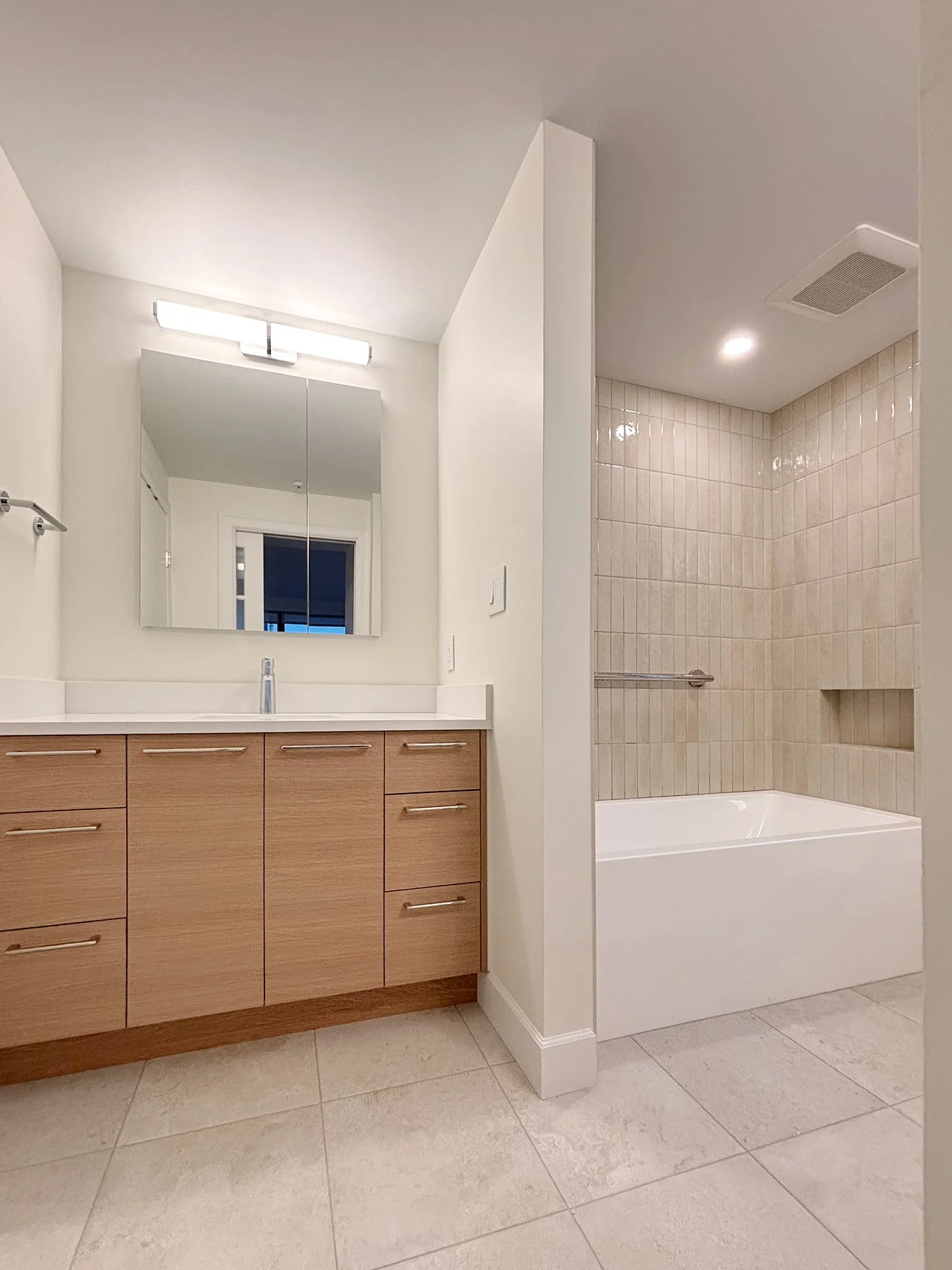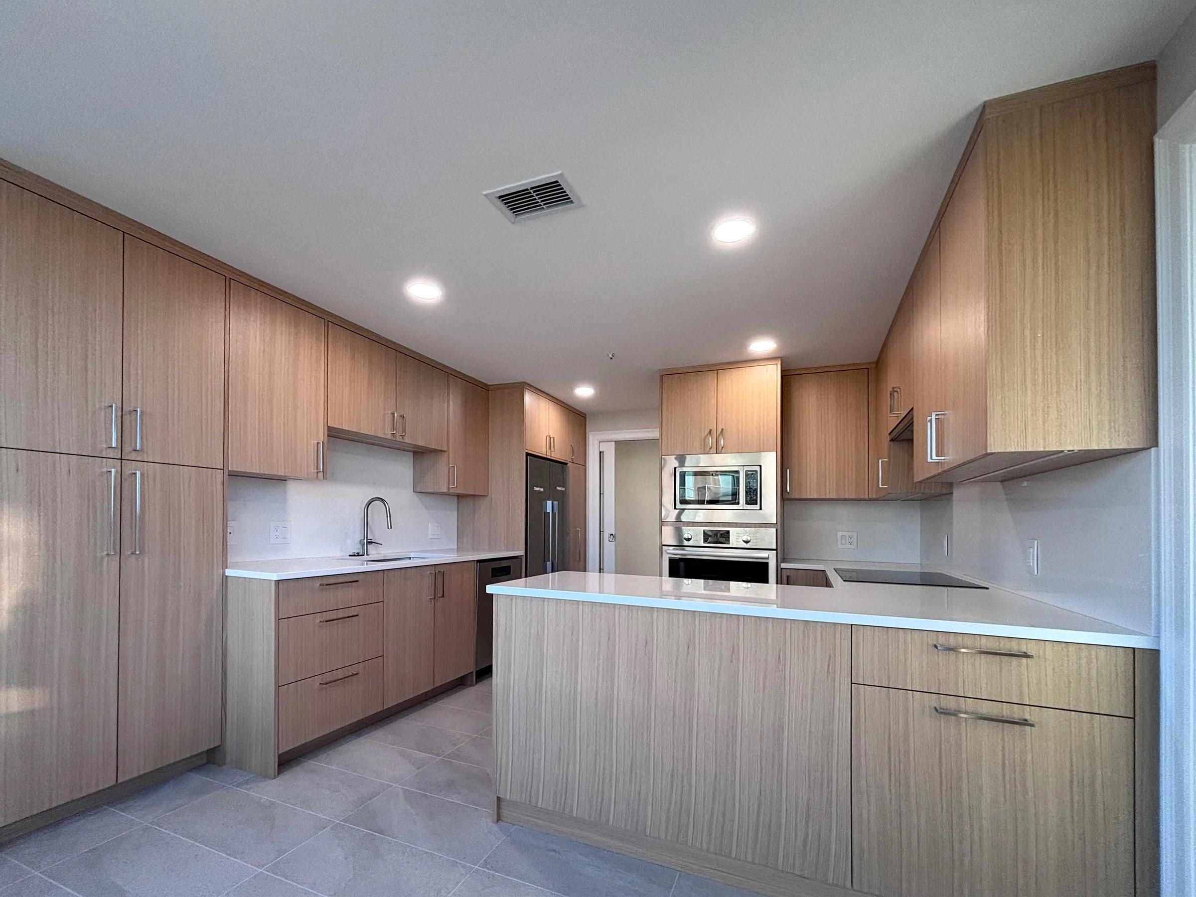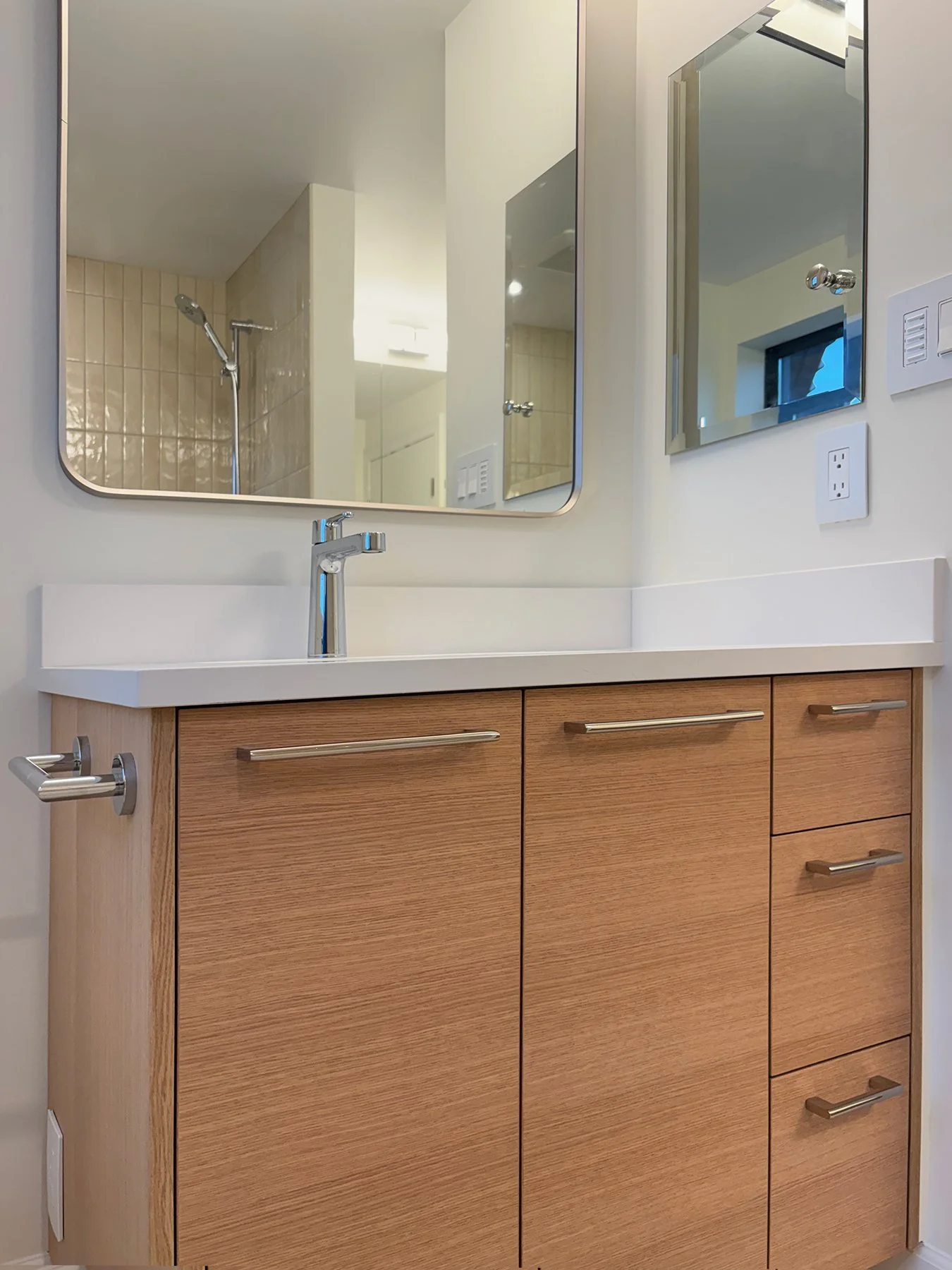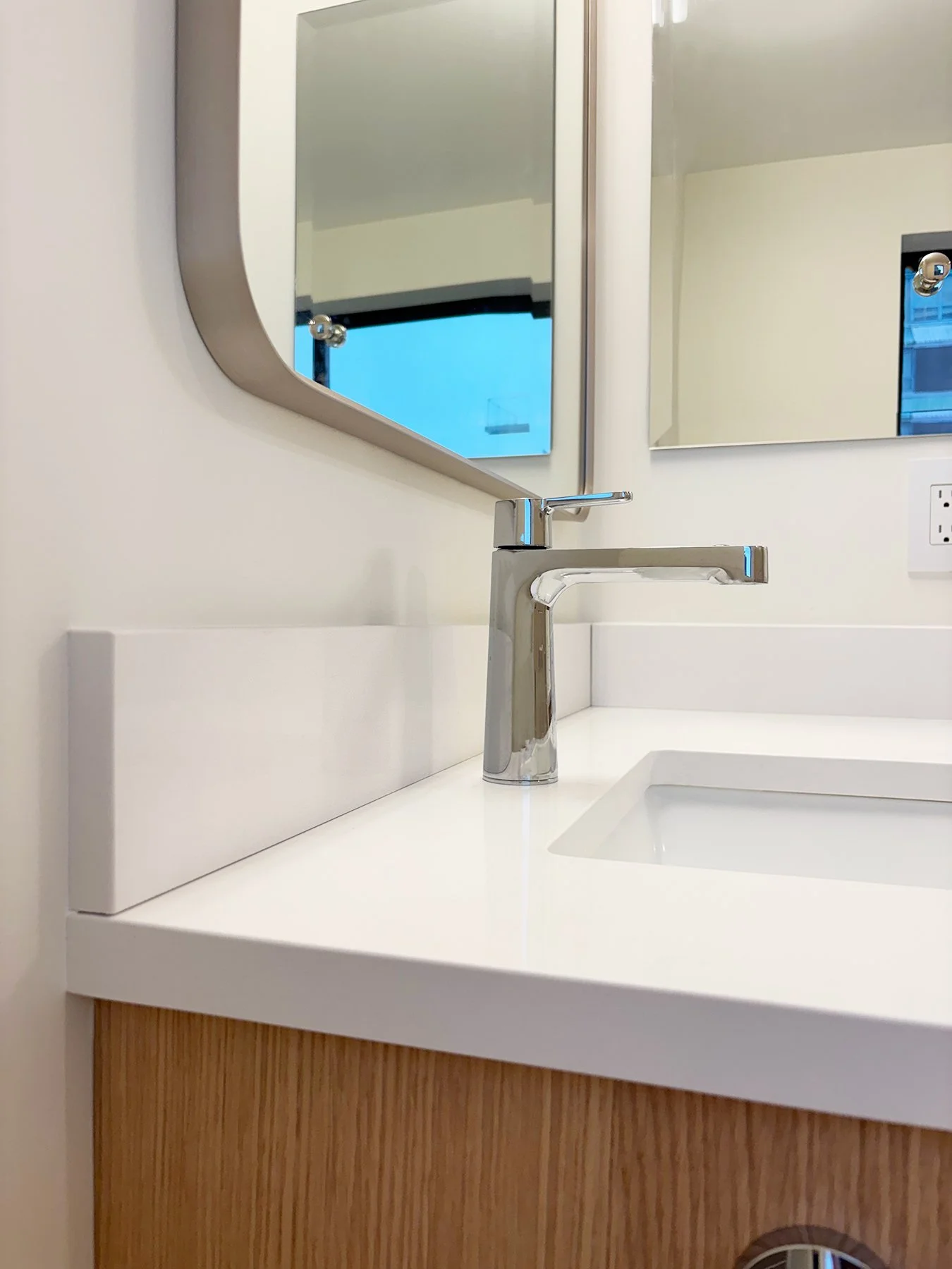 The homeowners purchased this large condo to provide plenty of extra space for visiting grandchildren. The existing space had incredible views, but a dated and tired interior. Collaborating closely with the homeowners and Sunny Bae Design, we came up with a game plan to modernize the space without losing its elegance. We completely gutted and re-built the kitchen and bathrooms while selectively updating the finishes elsewhere. Removing the old wallpaper, re-finishing the original oak floors, and selectively updating the mouldings gave this condo a fresh, yet elegant look.