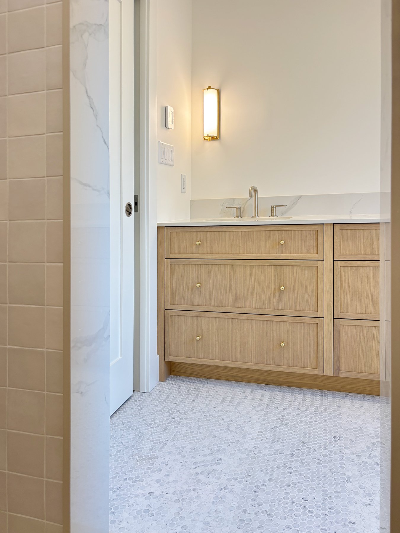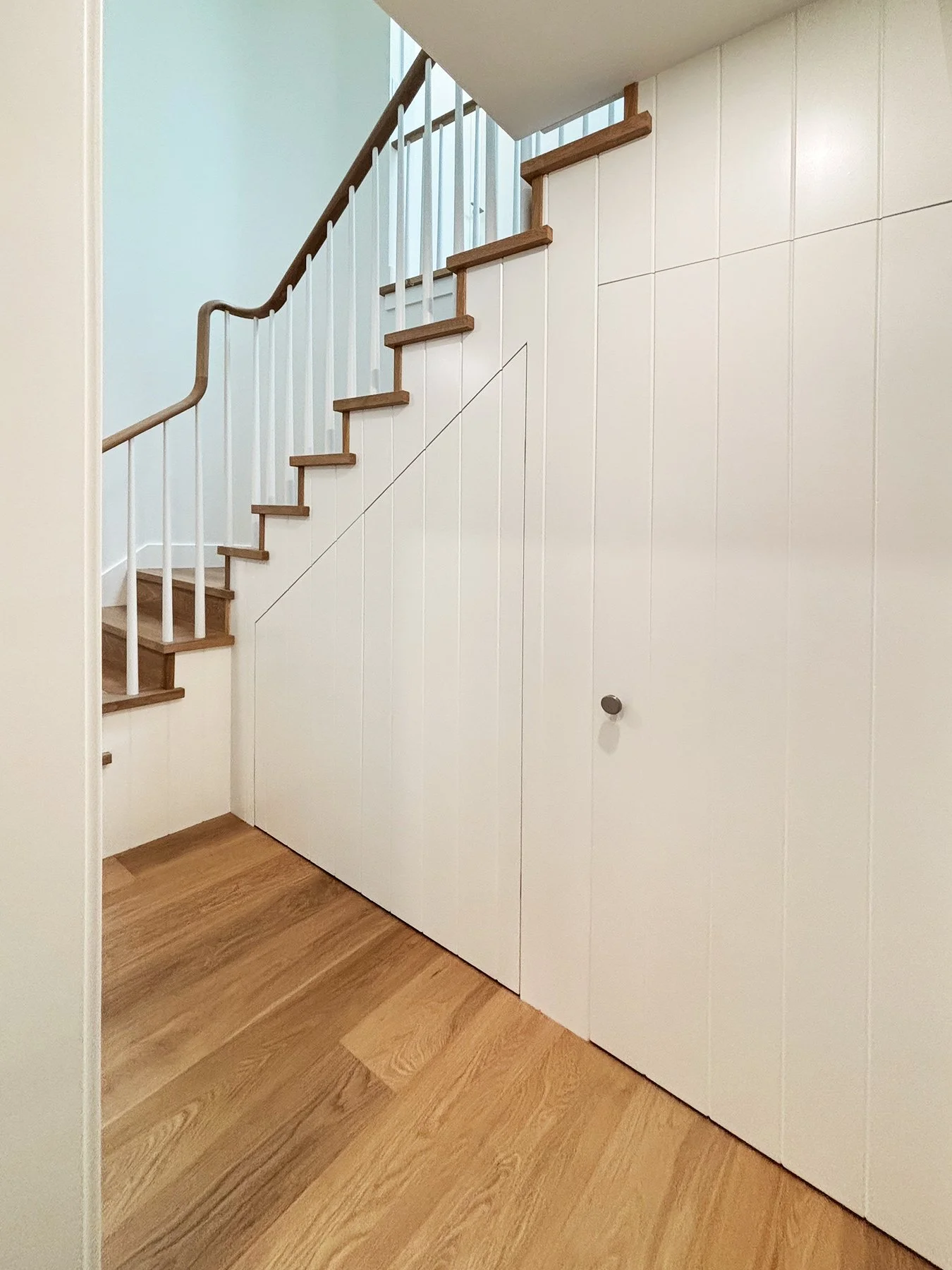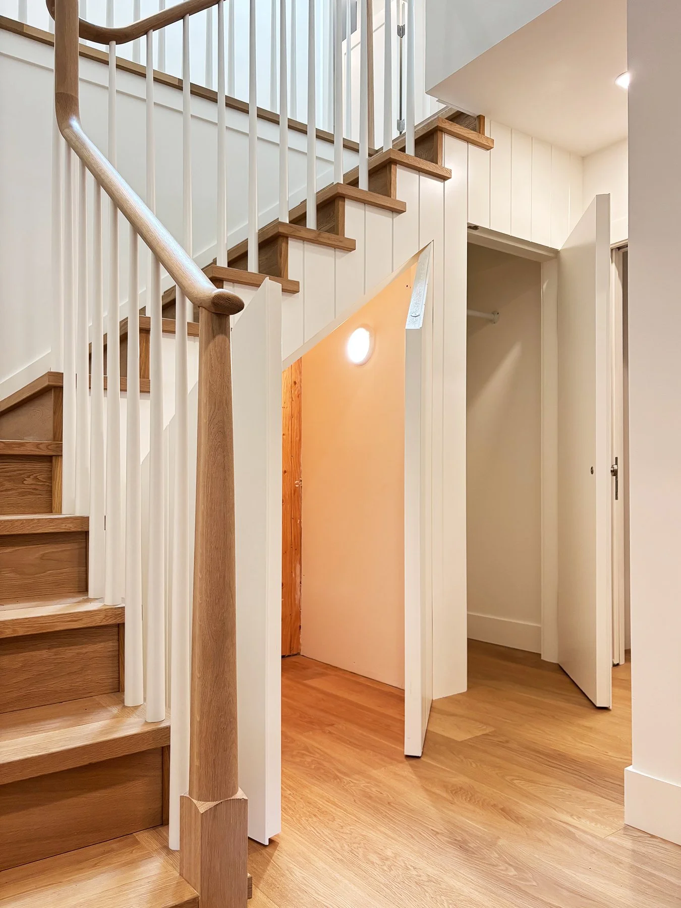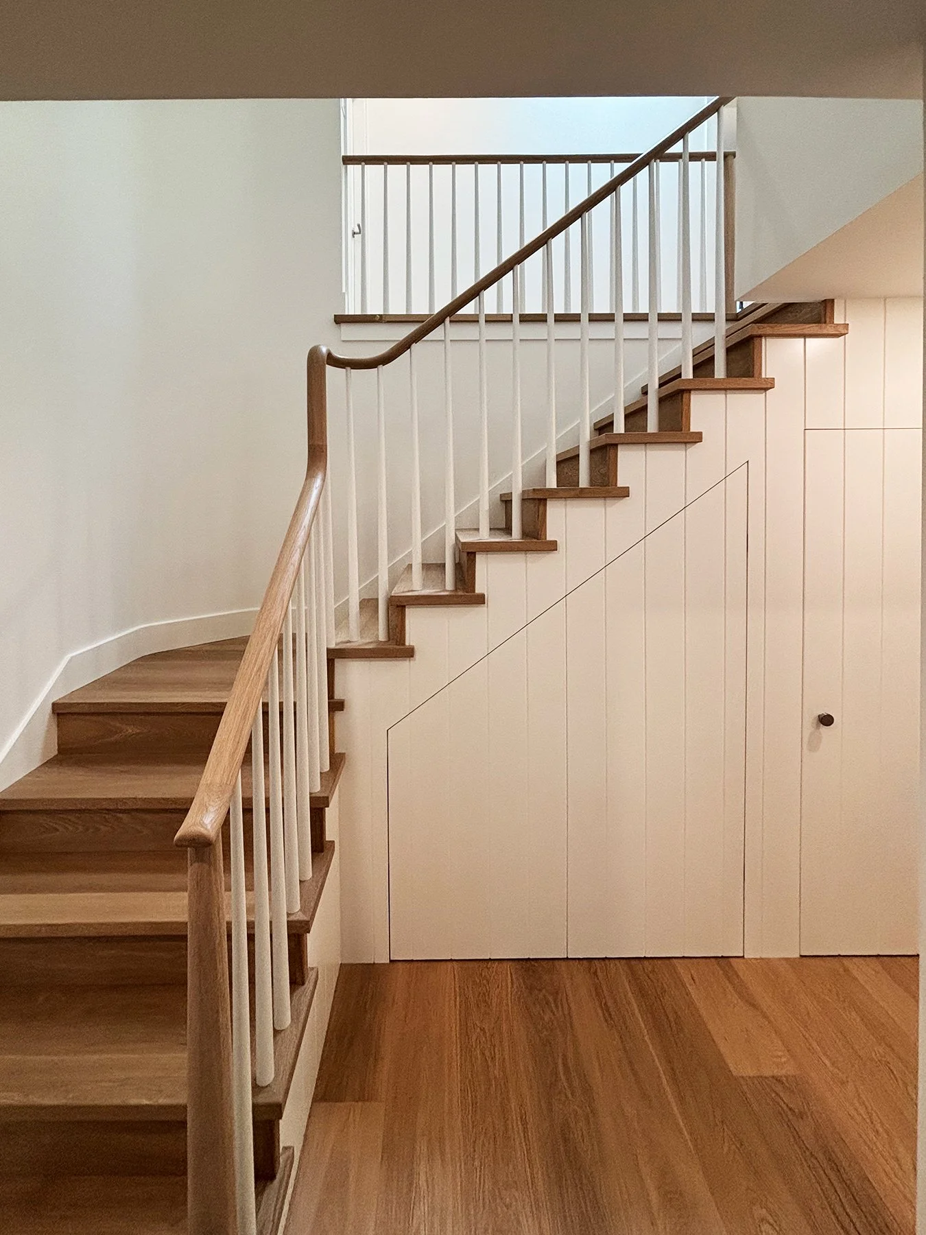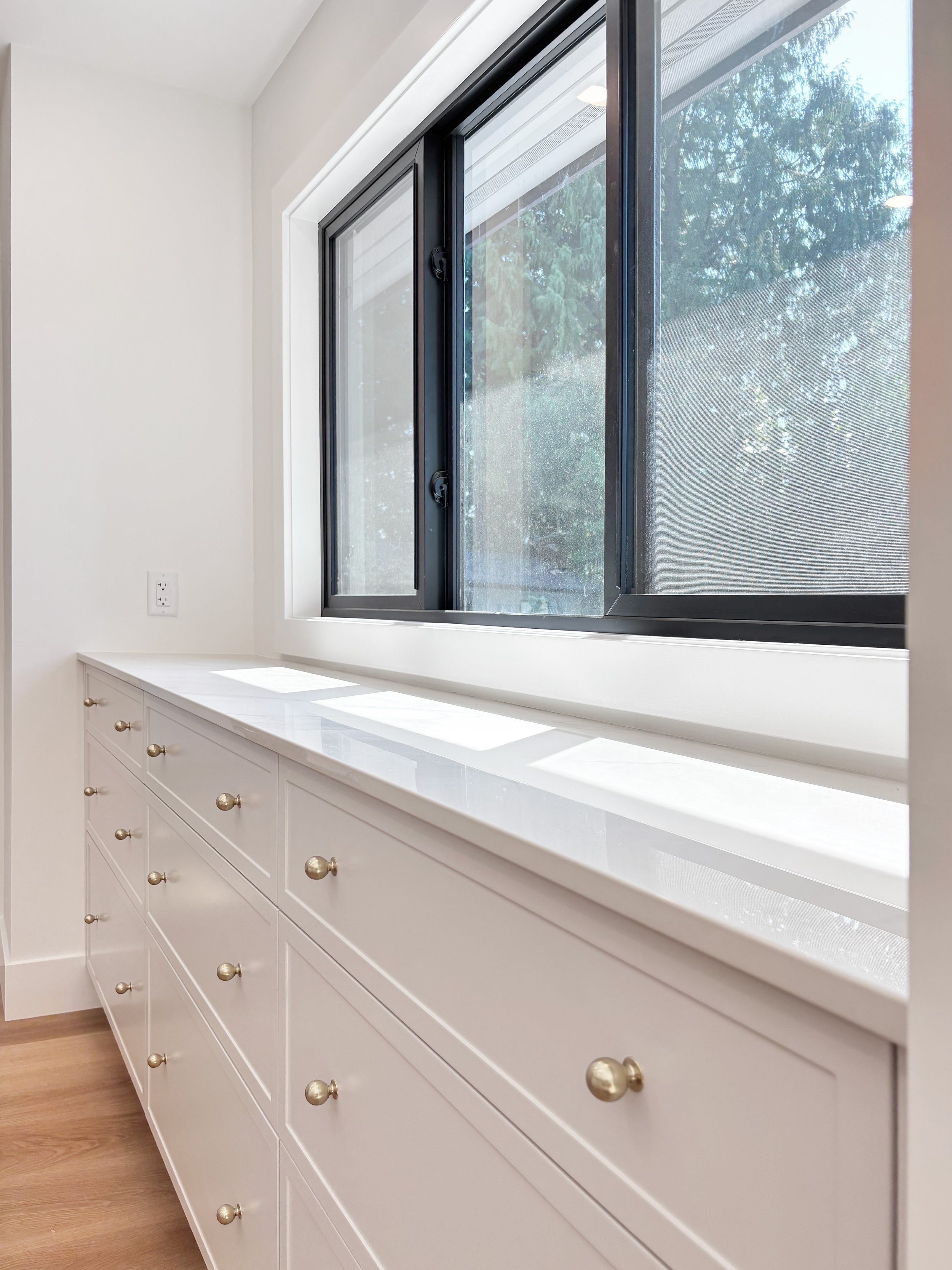 This family home was built in the 1960’s and had undergone several “Frankenstein” renovations over the years, leading to mismatched finishes and awkward layouts. The HVAC system was inefficient, barely cooling or warming the home, and the air quality was quite poor. We collaborated with Christine Shandro Design to create a uniquely beautiful, comfortable, well-configured home tailored to homeowners’ lifestyle. The flowing oak handrail on the staircase, with hidden storage beneath the stairs is the feature piece when entering the home. The kitchen and bathrooms were all completely re-built for joy-of-use and timeless style. The homeowners now enjoy fresh air indoors, at just the right temperature, thanks to new high performance windows and a completely re-configured air duct system.